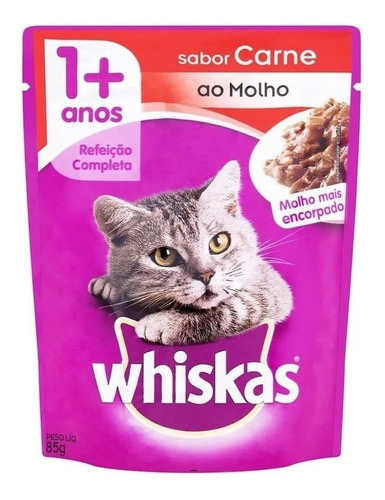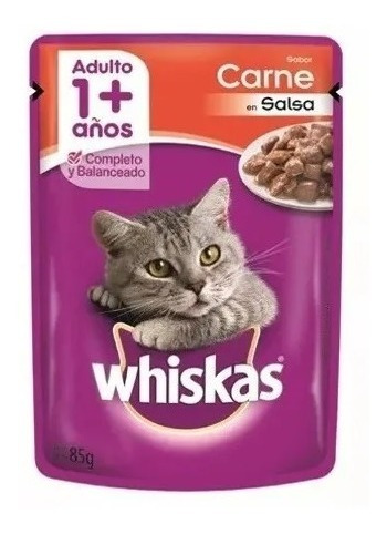 Whiskas Pouch Carne En Salsa 85 Grs. X 12 Unidades